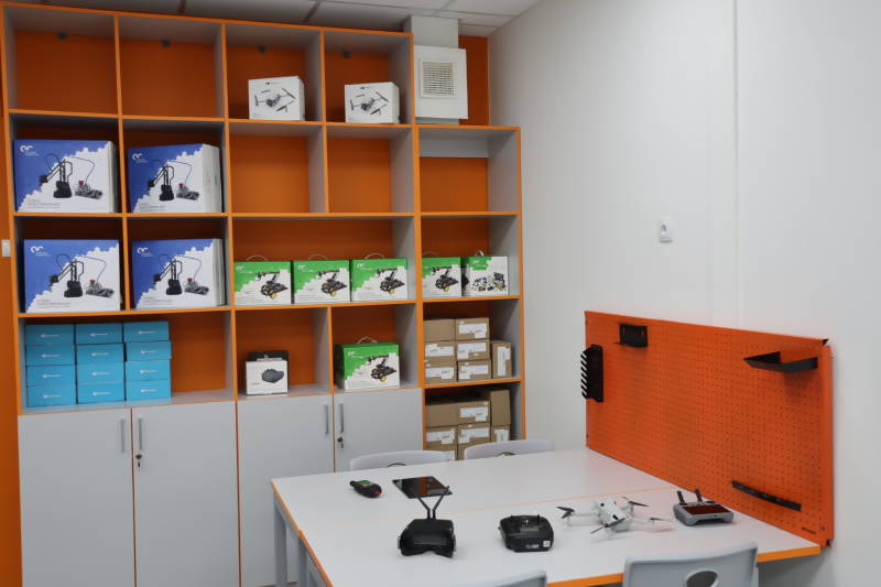 Лаборатории технопарка расположились на двух этажах, в образовательном процессе задействованы и кабинеты, и общие пространства. Занятия в кванториуме будут проходить по пяти направлениям технической и естественно-научной специализаций.